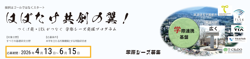 - 【公募】はばたけ共創の翼!つくば発・URAがつなぐ 学際シーズ発掘…