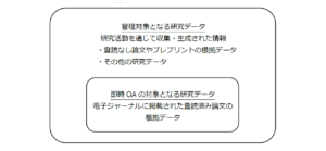 学術論文 電子ジャーナルに掲載された査読済みの研究論文(著者最終稿を含む) 根拠データ 掲載電子ジャーナルの執筆要領、出版規程等において、透明性や再現性確保の観点から必要とされ、公表が求められる研究データ |