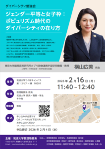 題  目: ダイバーシティ勉強会:ジェンダー平等と女子枠:ポピュリズム時代のダイバーシティの在り方